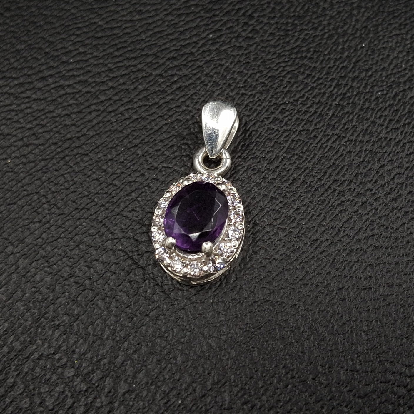 Amethyst and Zirconia on Silver Pendant