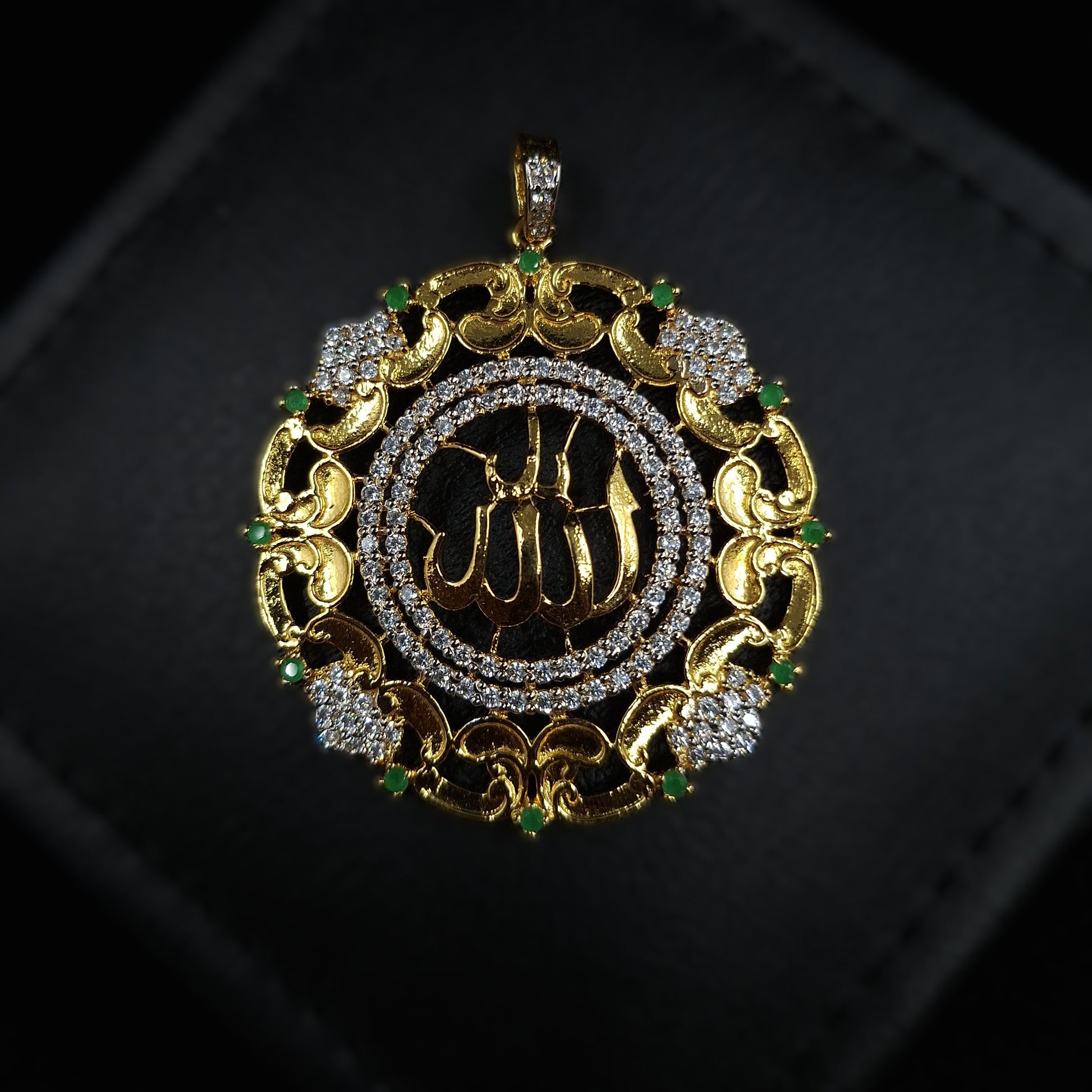 Allah Pendant in 925-Silver with Clear and Green Zirconium Setting Gold-plated