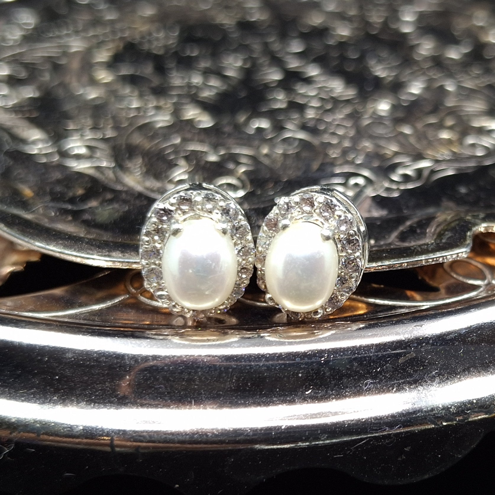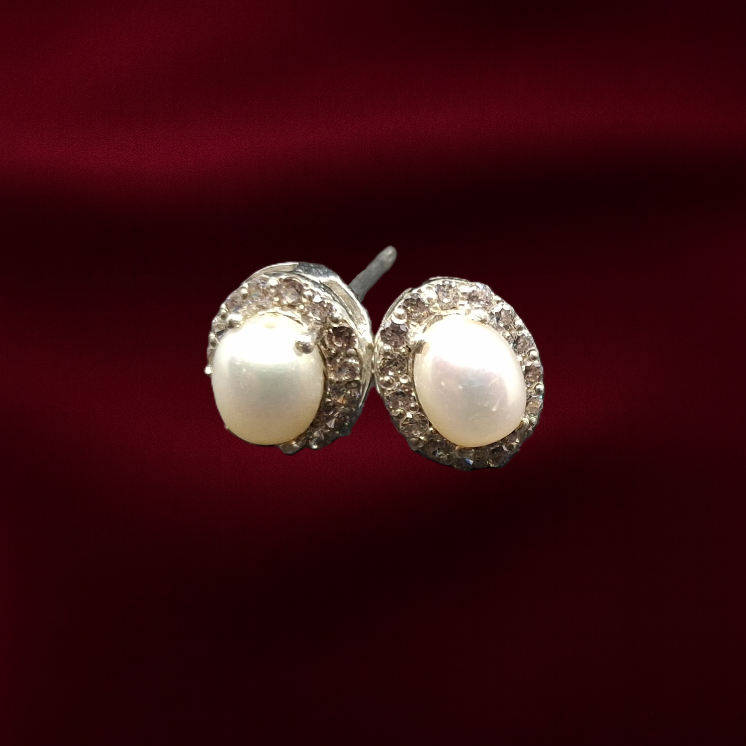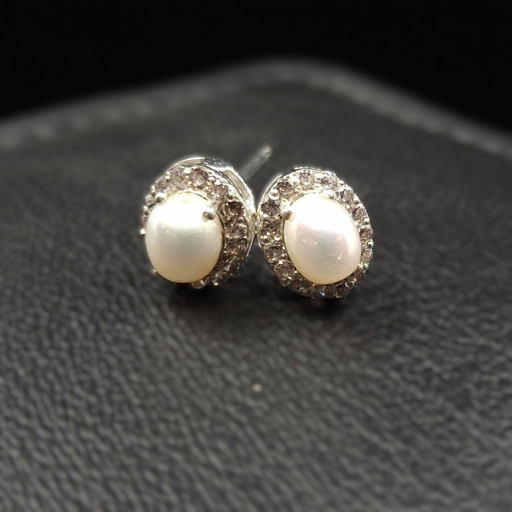 Timeless Elegance: Pearl & Cubic Zirconia Stud Earrings in 925 Silver