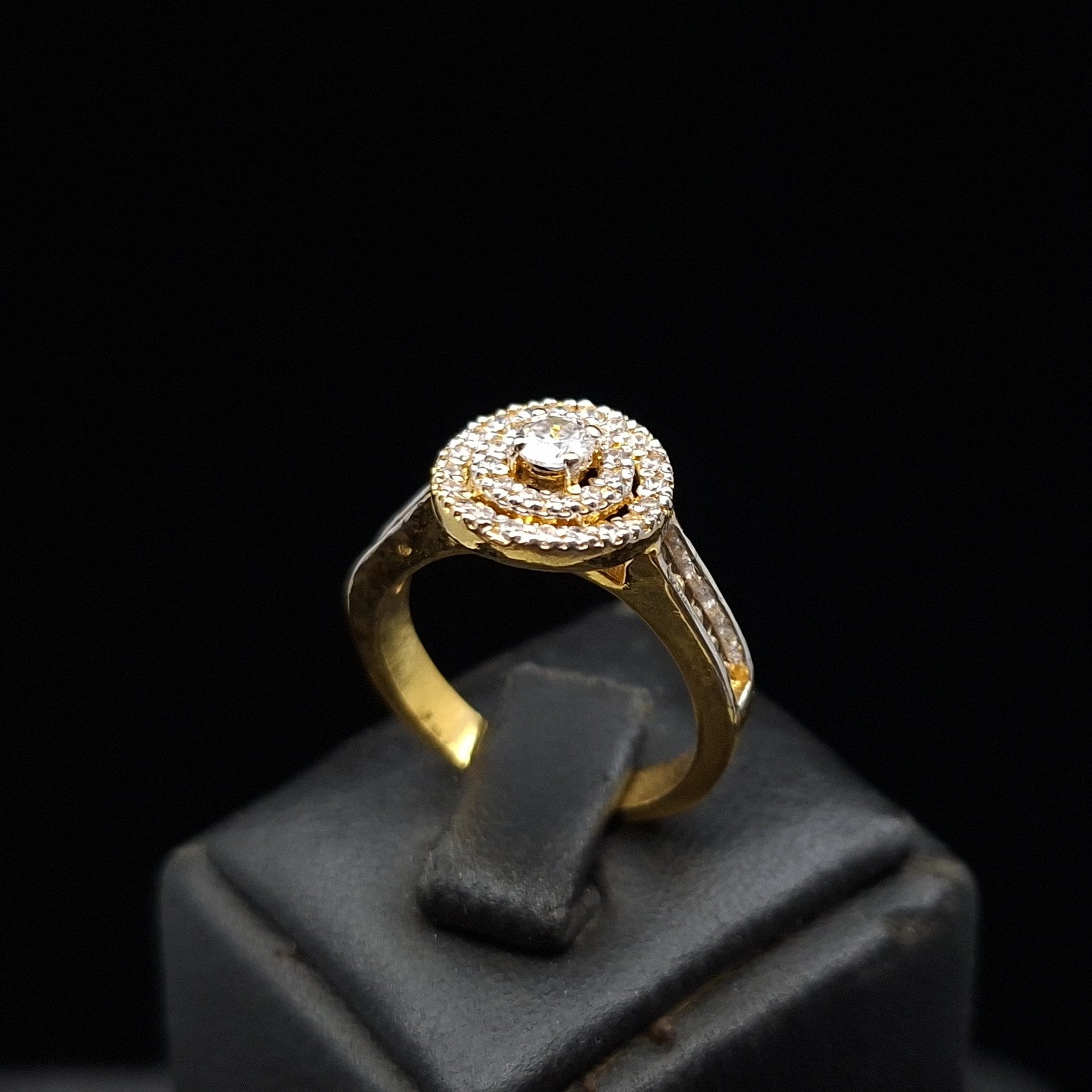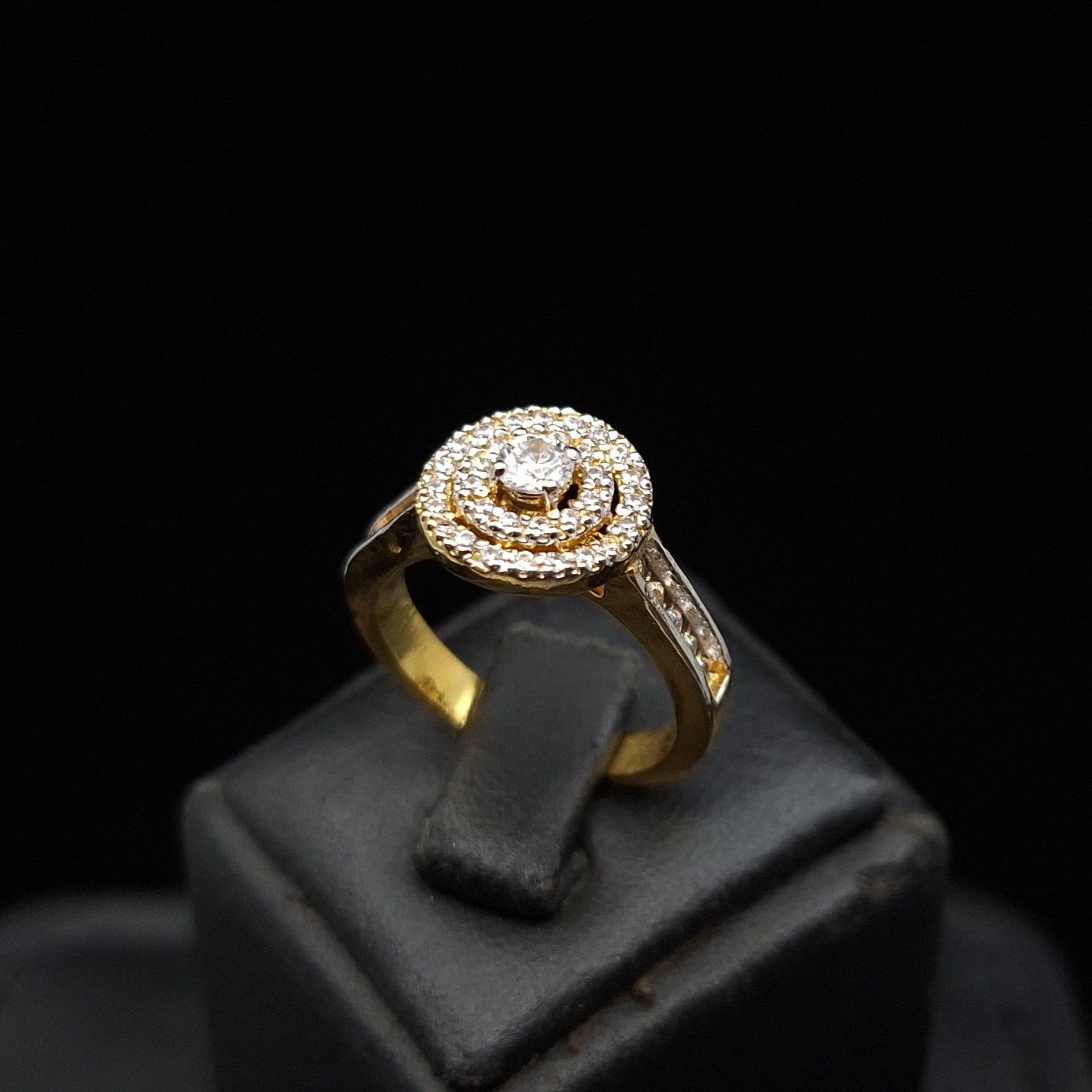 Double Halo Zirconia on Gold-plated Silver Ring