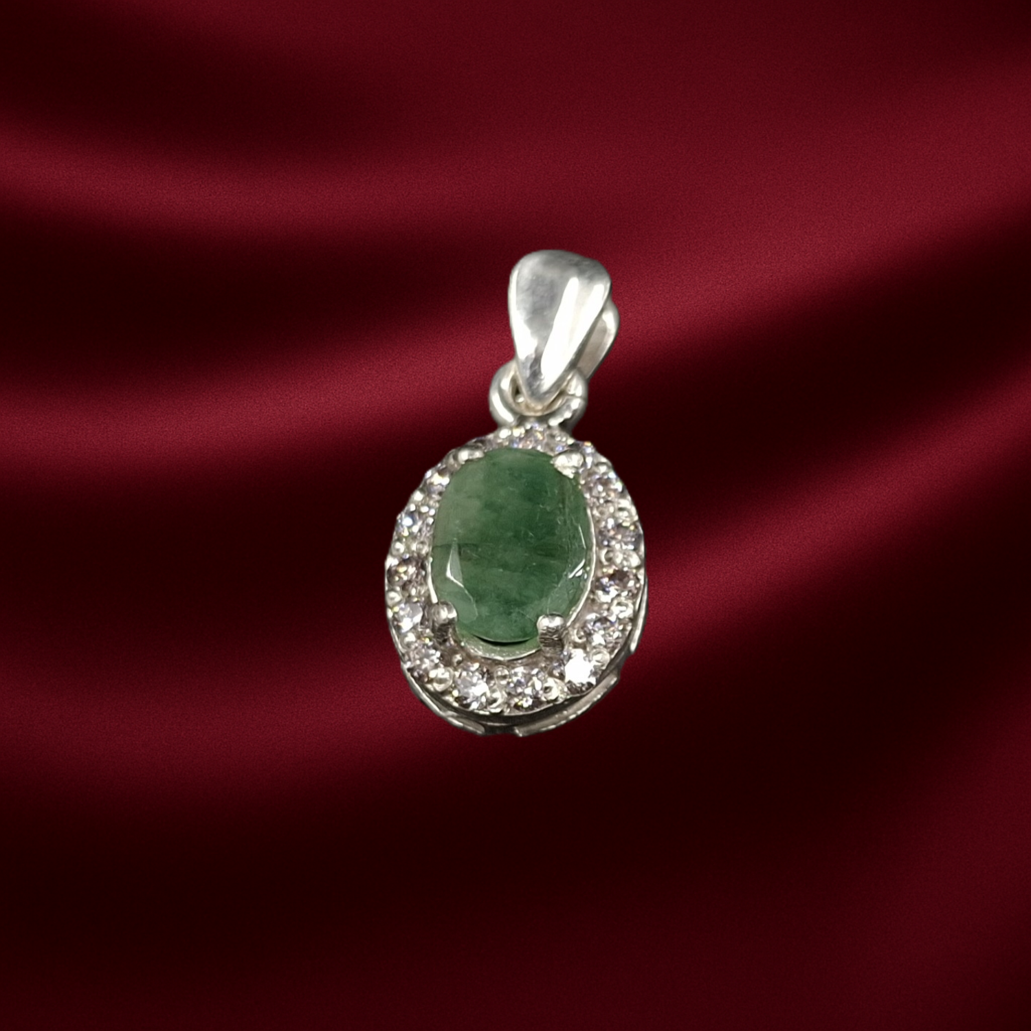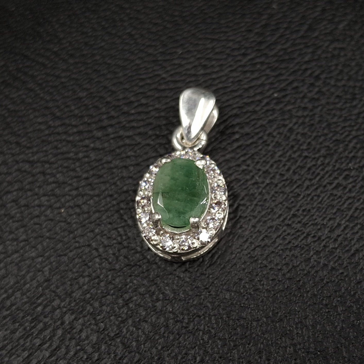 Emerald and ZirconiaSilver Pendant