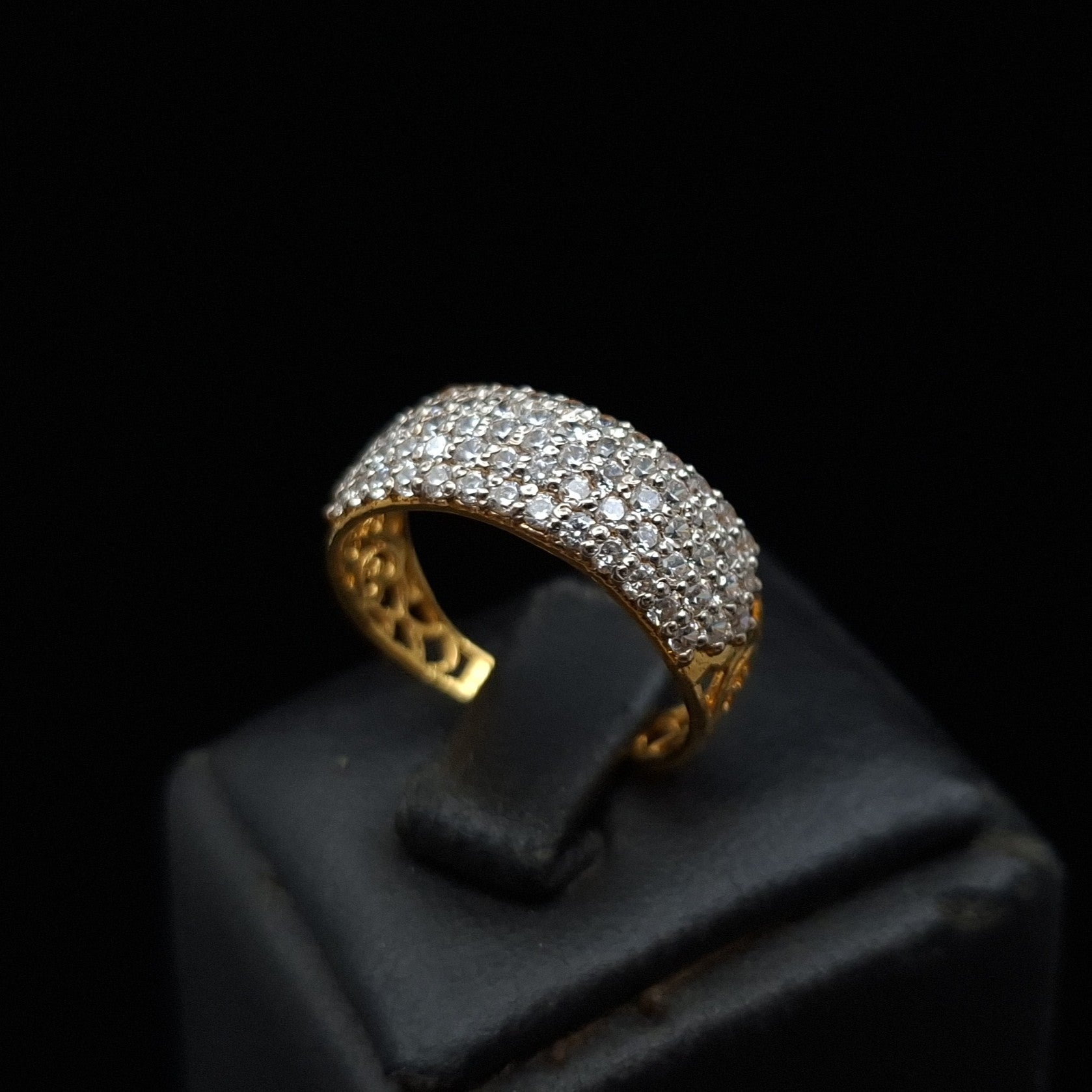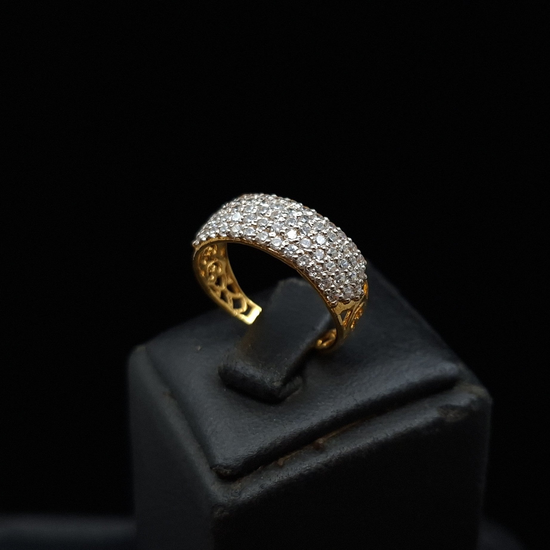 Elegantly crafted in gold-plated 925 silver, this band ring features a luxurious array of meticulously pave-set cubic zirconia stones. The delicate setting maximizes brilliance while offering a refined and timeless design that pairs effortlessly with both formal and everyday looks.