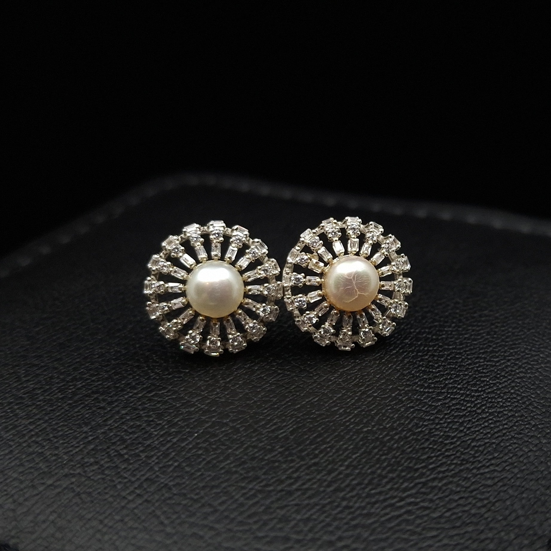 Radiating classic sophistication, these freshwater pearl stud earrings are a graceful addition to any collection. The lustrous pearls are nestled in a sparkling halo of high-clarity cubic zirconia, all elegantly set in 925 sterling silver. Their timeless floral-inspired design makes them perfect for weddings, formal occasions, or simply elevating your everyday style.