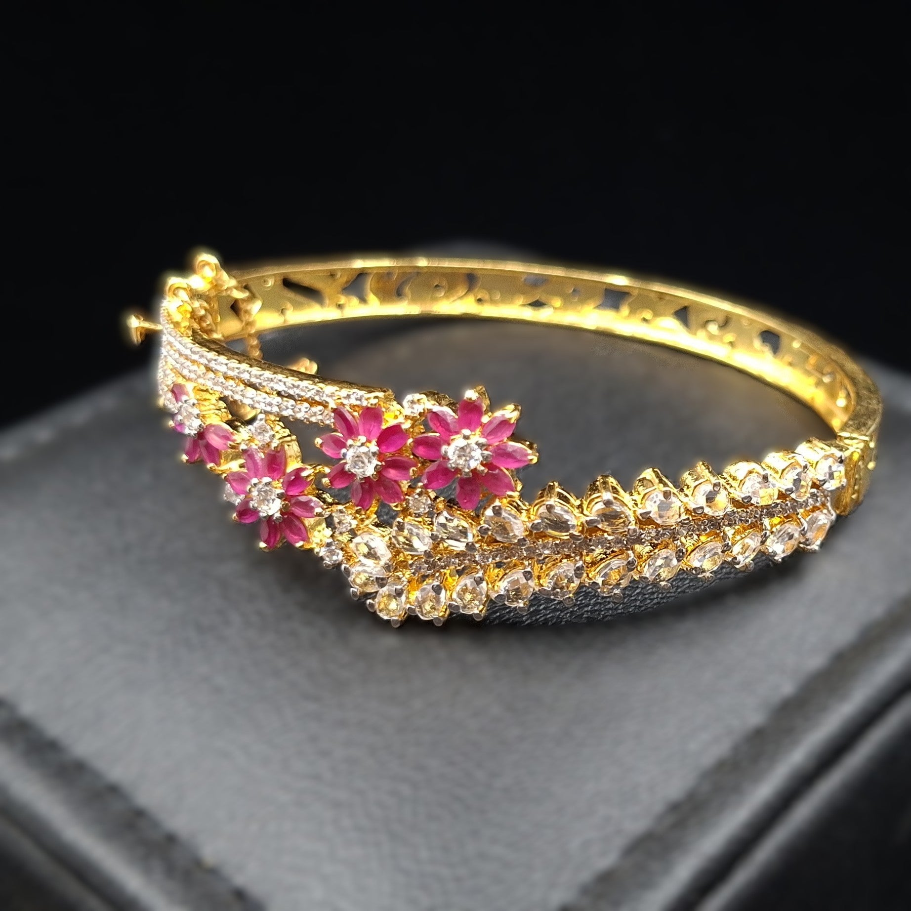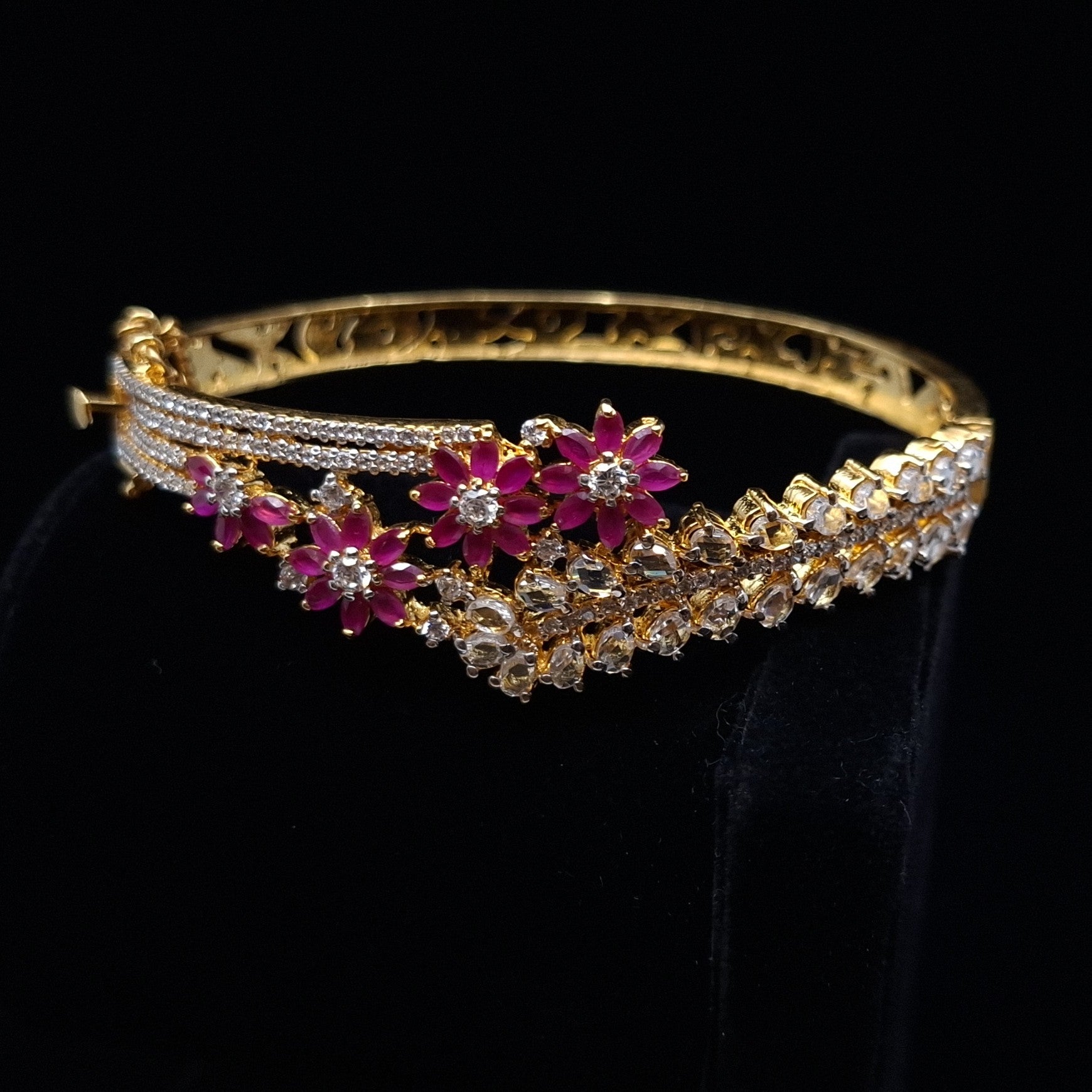 Pink Floral Zirconium Gold-plated Silver Bangle