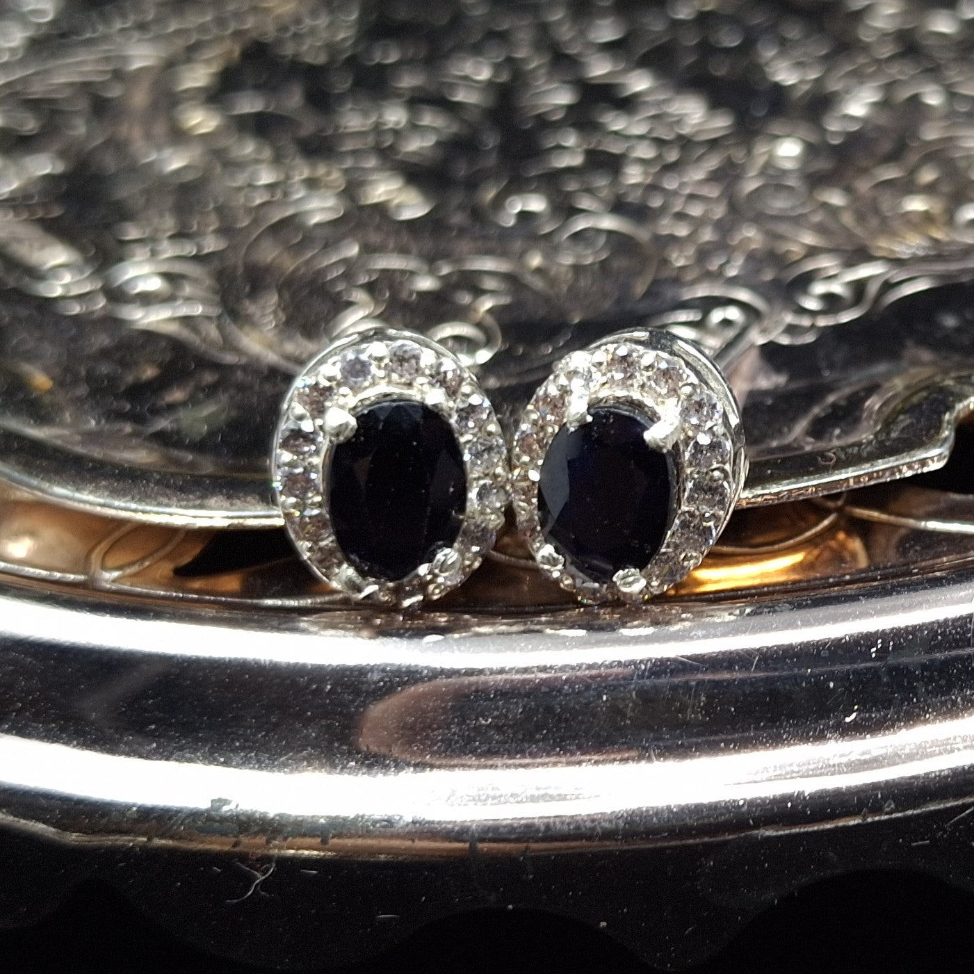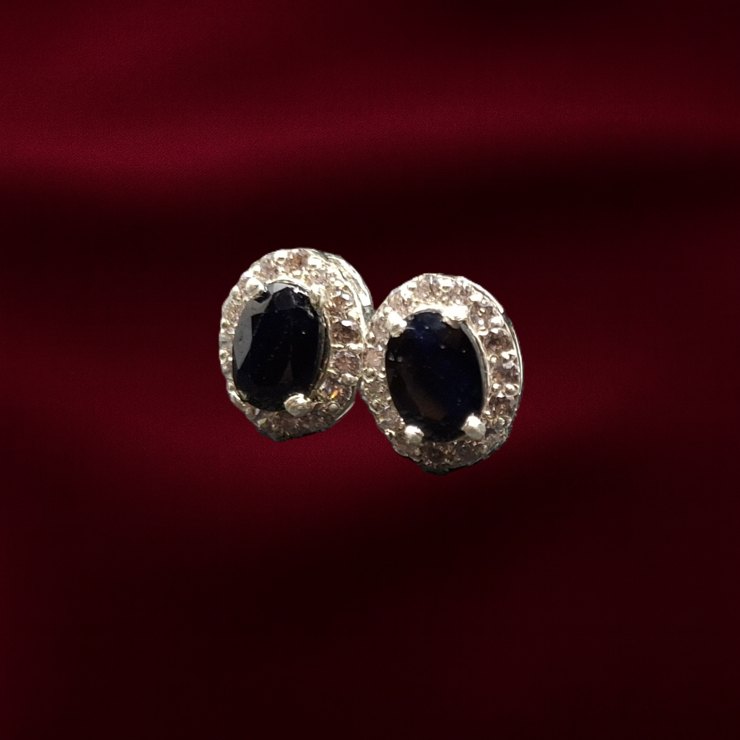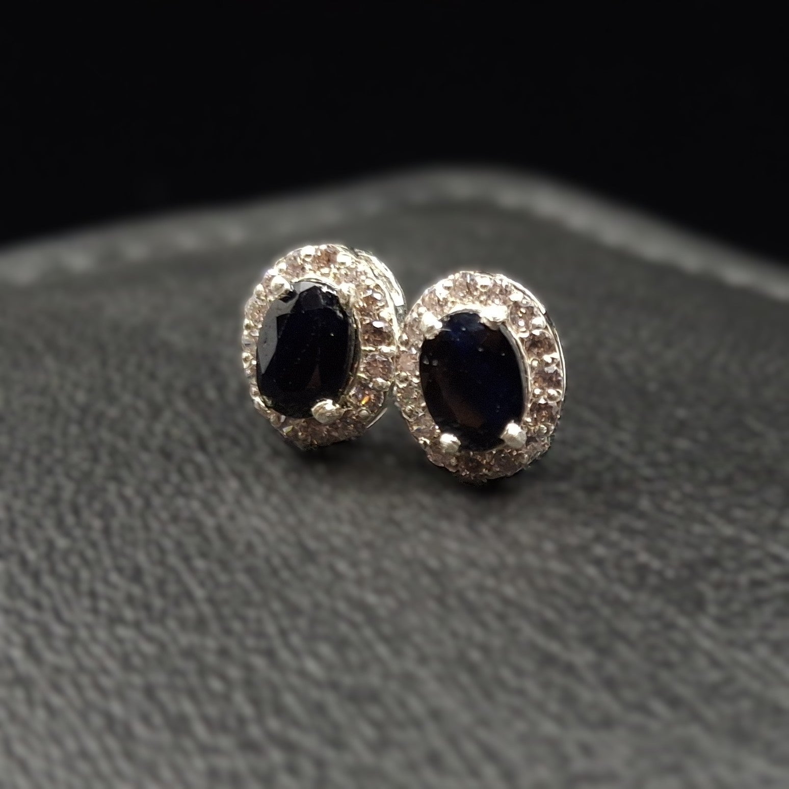 Elegant and timeless, these stud earrings feature deep midnight blue natural sapphires encircled by a halo of sparkling cubic zirconia. Set in genuine 925 sterling silver, they bring a refined sparkle and a bold classic touch to any ensemble.