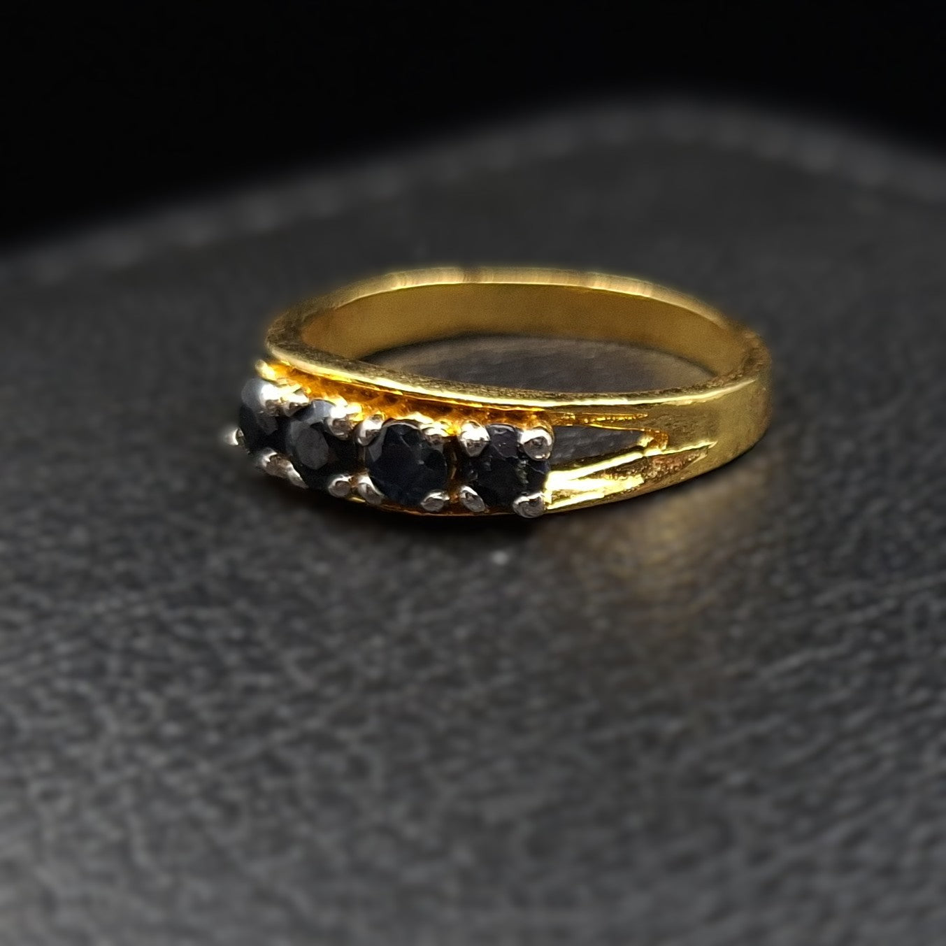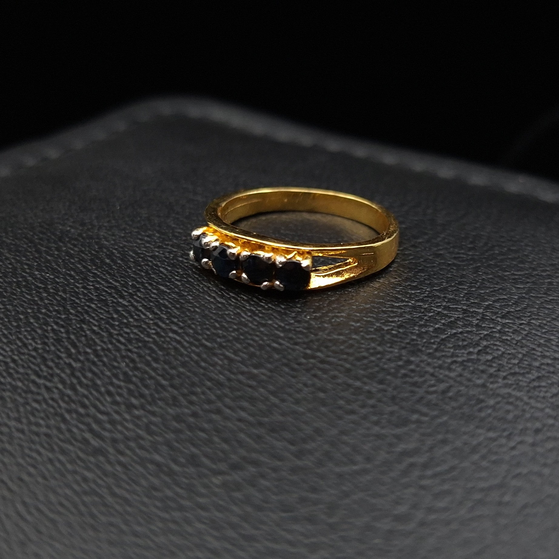 Elevate your style with this exquisite heat-treated triple sapphire ring, beautifully crafted in gold-plated 925 sterling silver. Featuring three deep blue sapphires set in a graceful row, this elegant design symbolizes harmony and balance. The polished gold-plated band enhances the sapphires’ luster, making it a timeless piece for both everyday wear and special occasions.