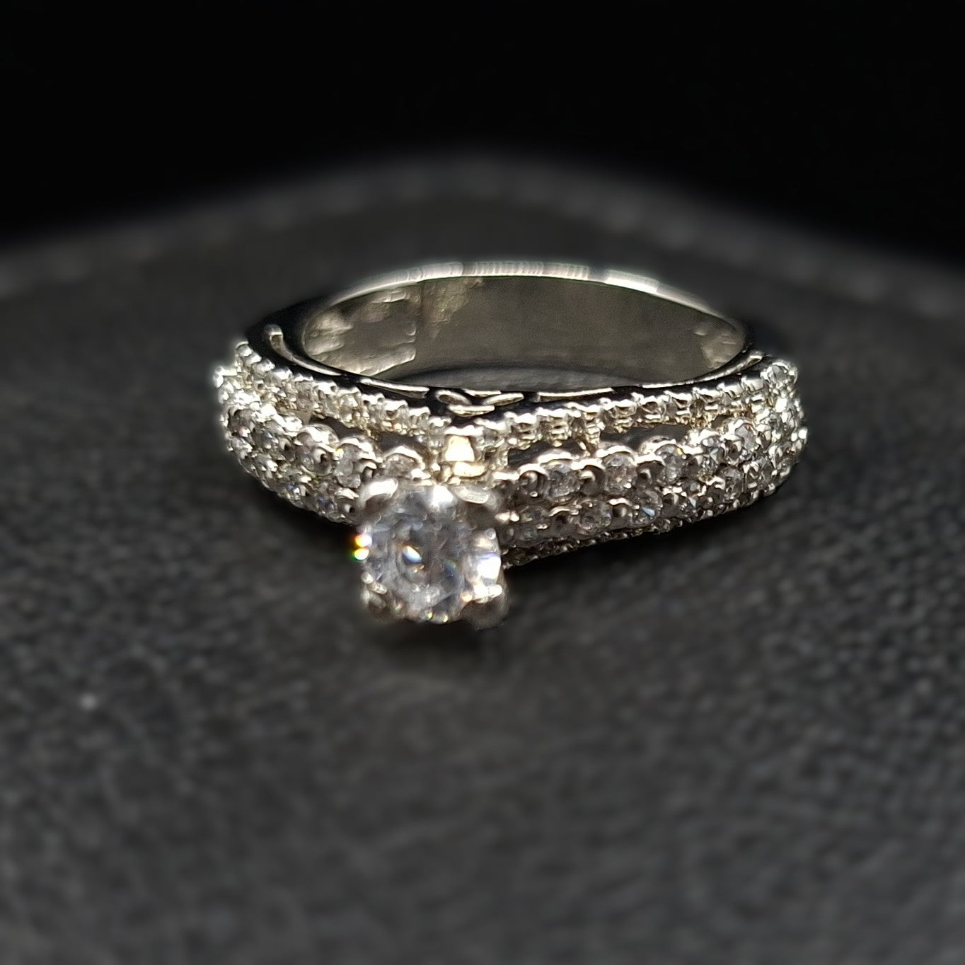 Elegance meets timeless design in this stunning 925 sterling silver ring. A brilliant-cut cubic zirconia solitaire takes center stage, elevated by a split shank band adorned with delicate pavé-set stones for added sparkle. Crafted in premium sterling silver, this piece is perfect as an engagement ring, promise ring, or a sophisticated everyday accessory.